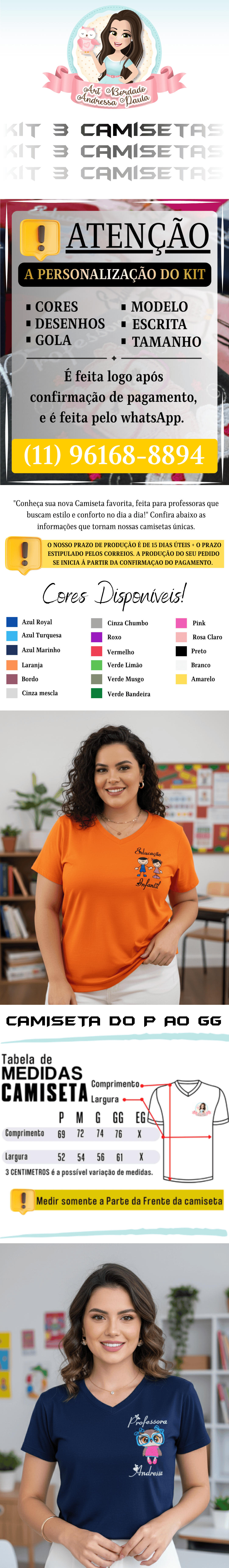 KIT 3 CAMISETAS PROFESSORA